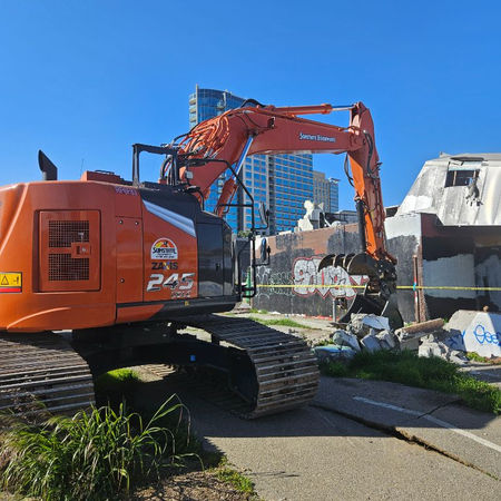 Leveraging our extensive equipment fleet including excavators, hi-side dump trucks, and end dumps, we executed an efficient debris removal operation that minimized project duration and site disruption. Our integrated approach—combining environmental abatement expertise with heavy demolition capability—allowed for seamless project flow from hazardous material removal through final site clearance.